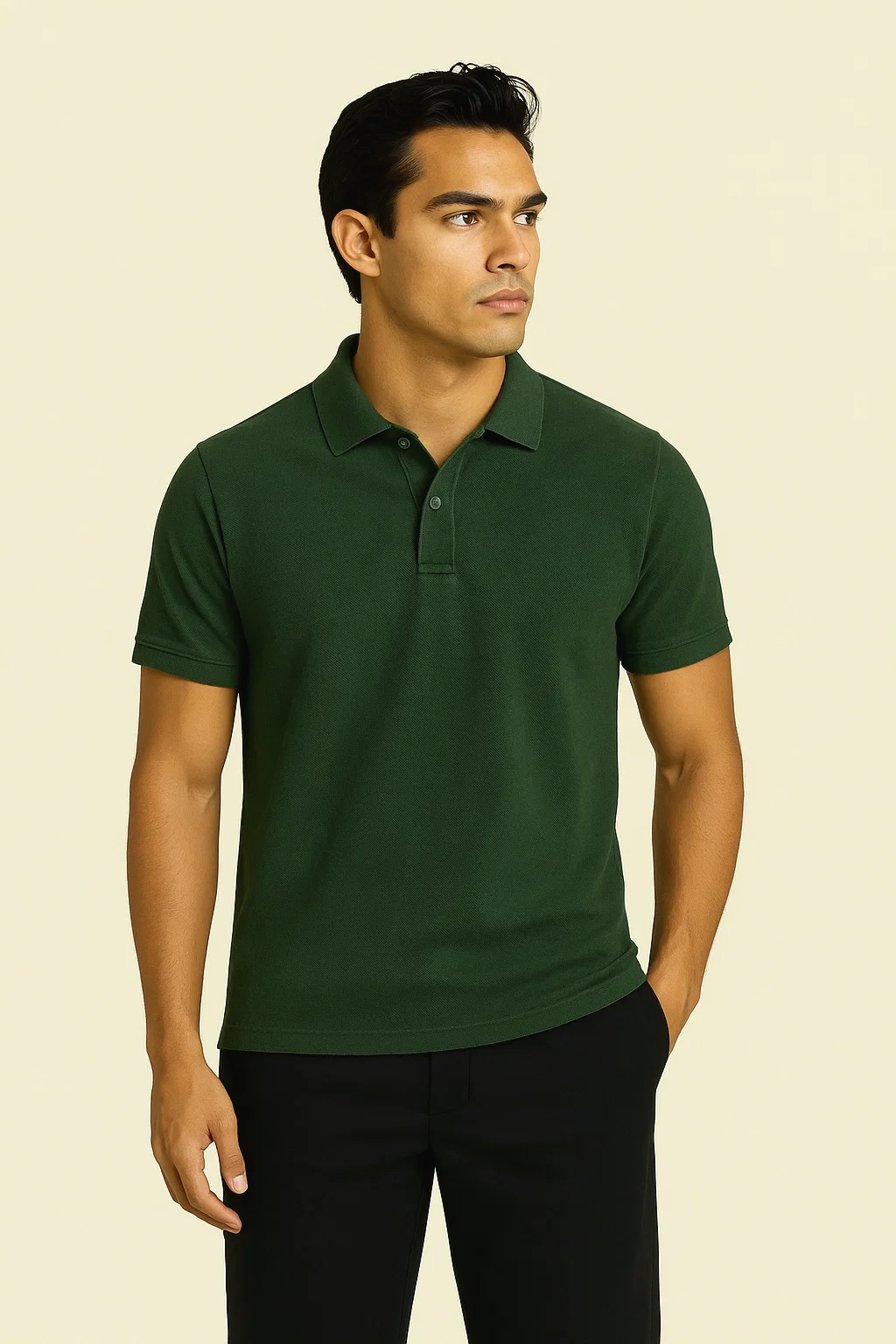 Zielona Koszulka Polo z Kołnierzykiem Żebrowanym i Zapięciem na 3 Guziki – Kamil