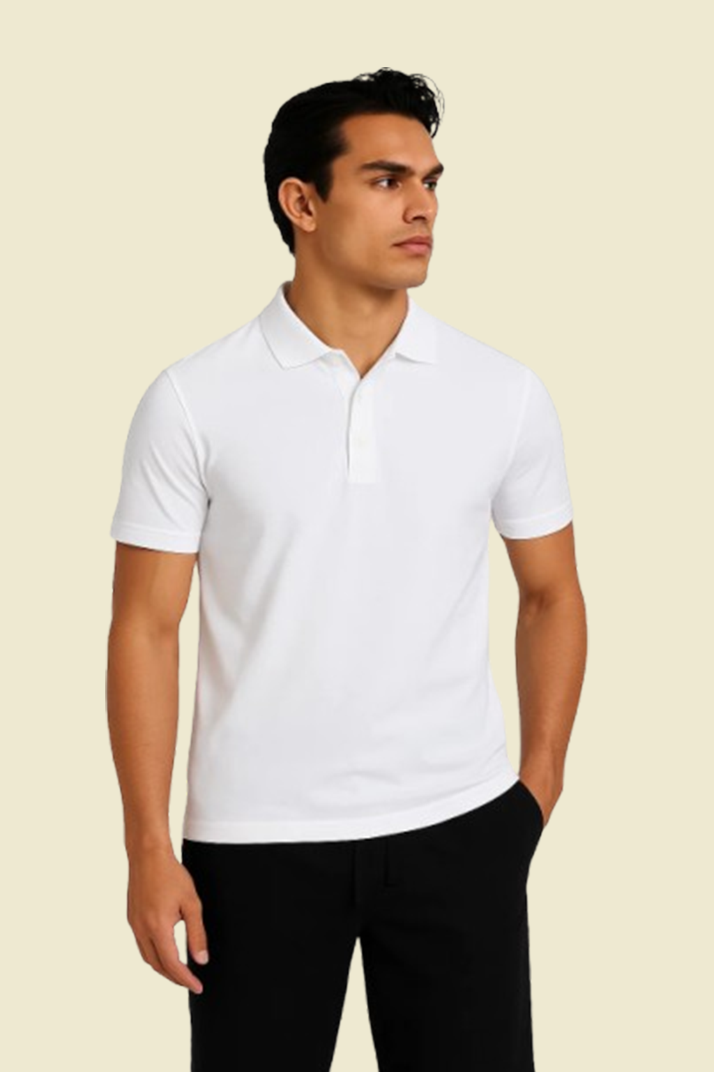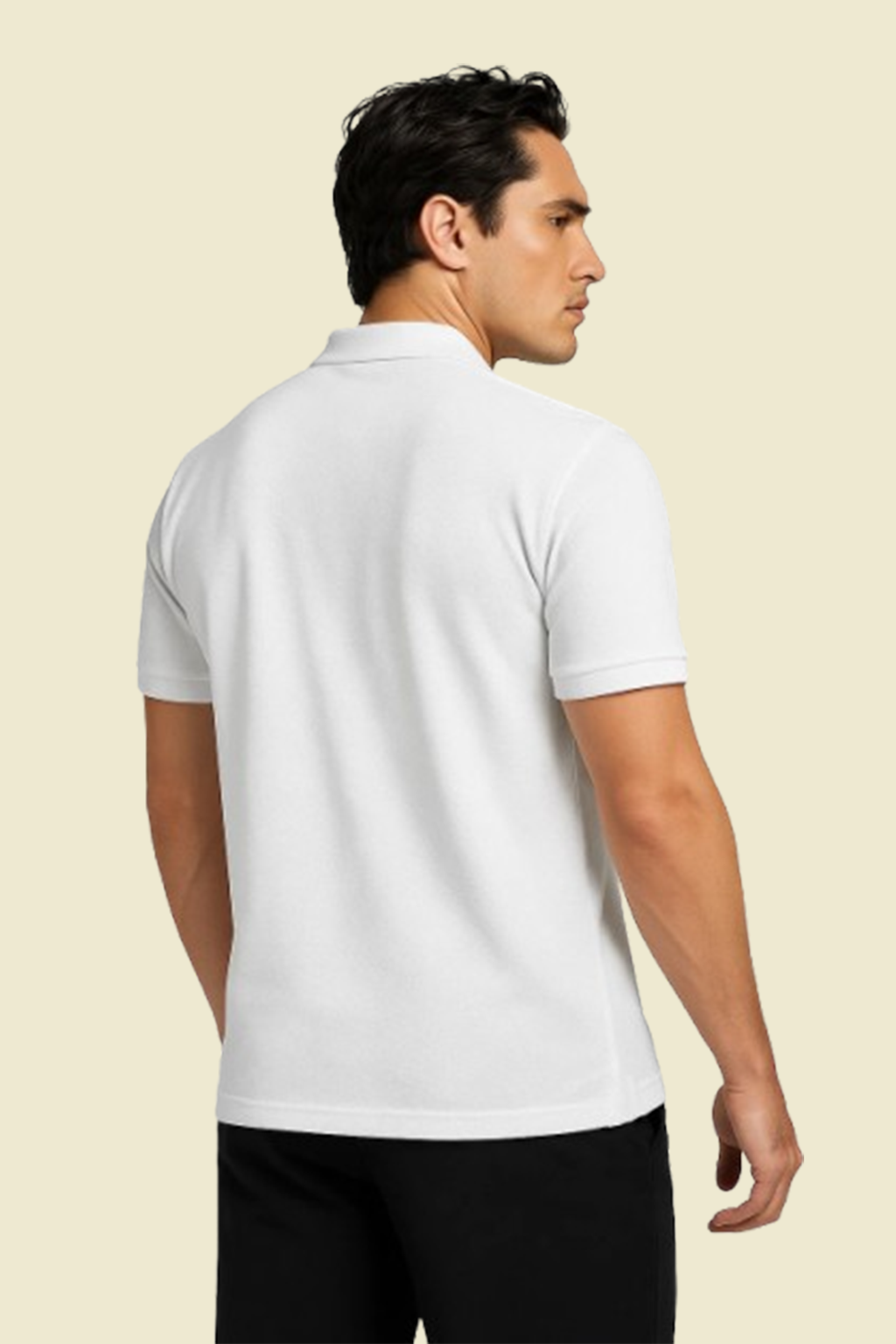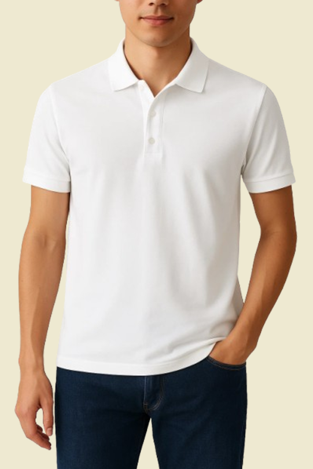 Biała Koszulka Polo z Kołnierzykiem Żebrowanym i Zapięciem na 3 Guziki – Antoni