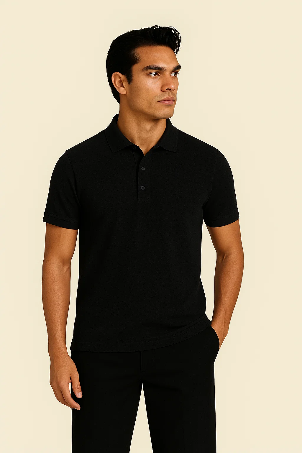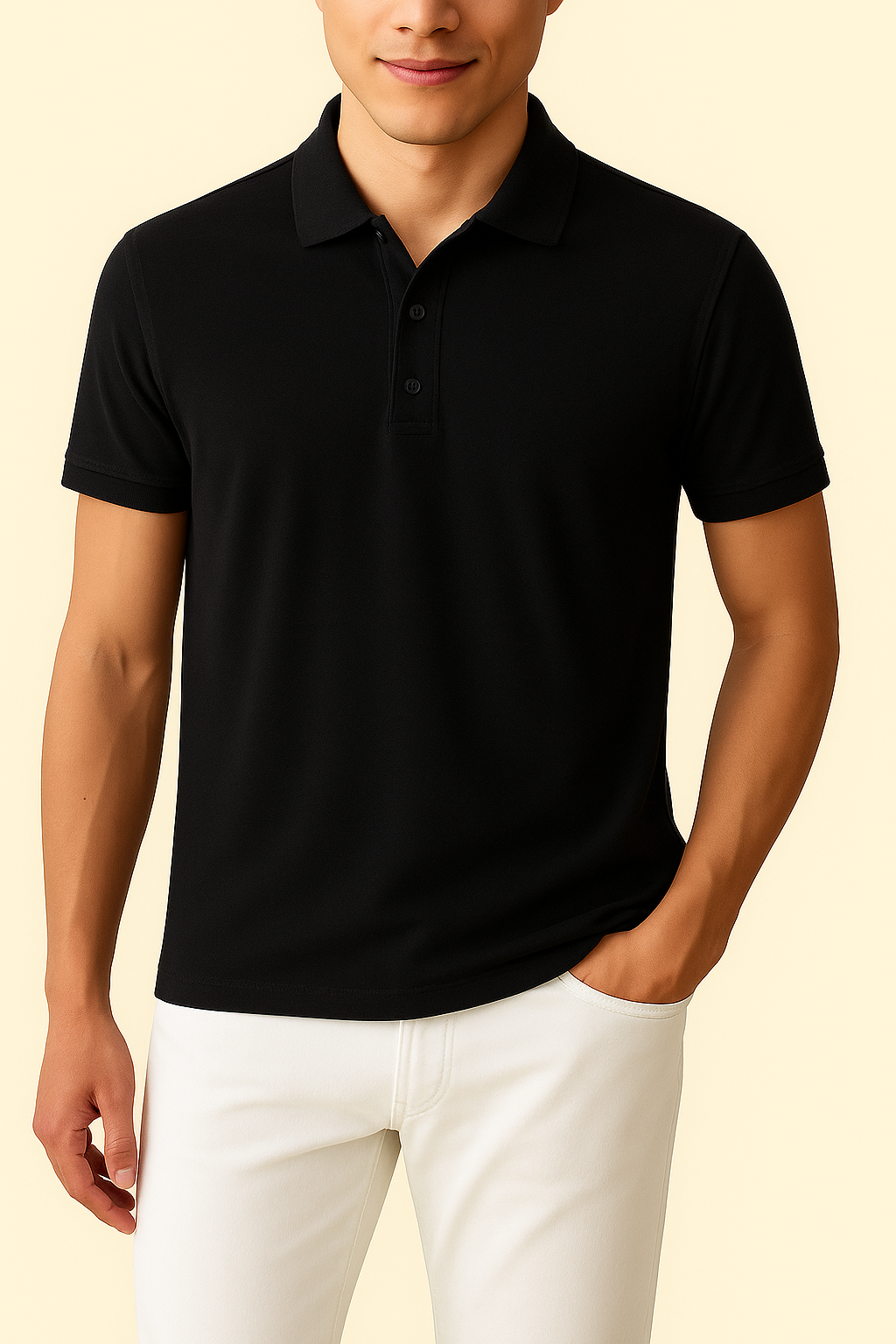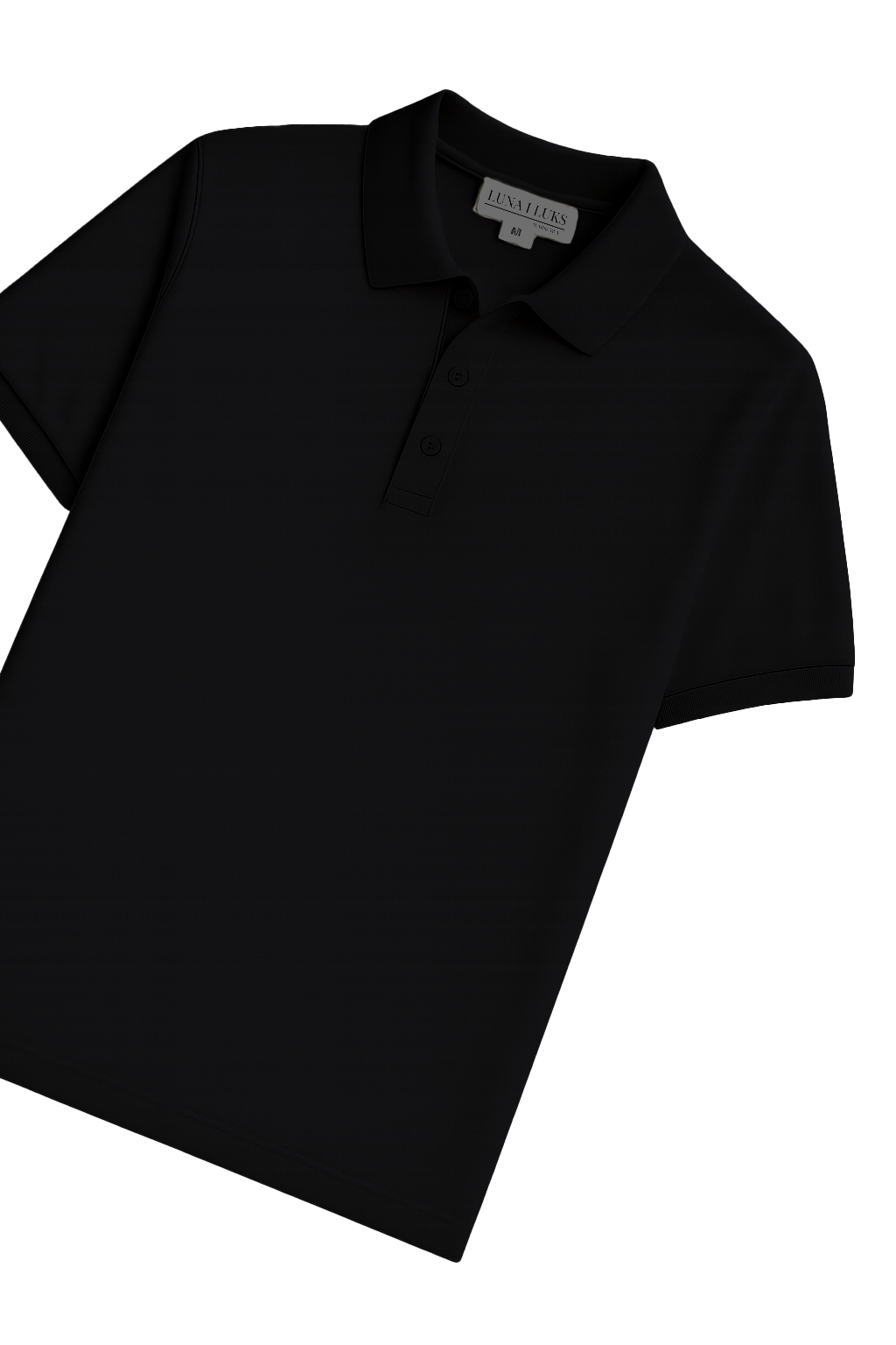 Czarna Koszulka Polo z Kołnierzykiem Żebrowanym i Zapięciem na 3 Guziki – Borys