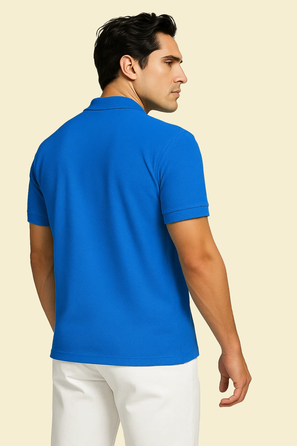 Niebieska (Cerulean) Koszulka Polo z Kołnierzykiem Żebrowanym i Zapięciem na 3 Guziki – Jarek