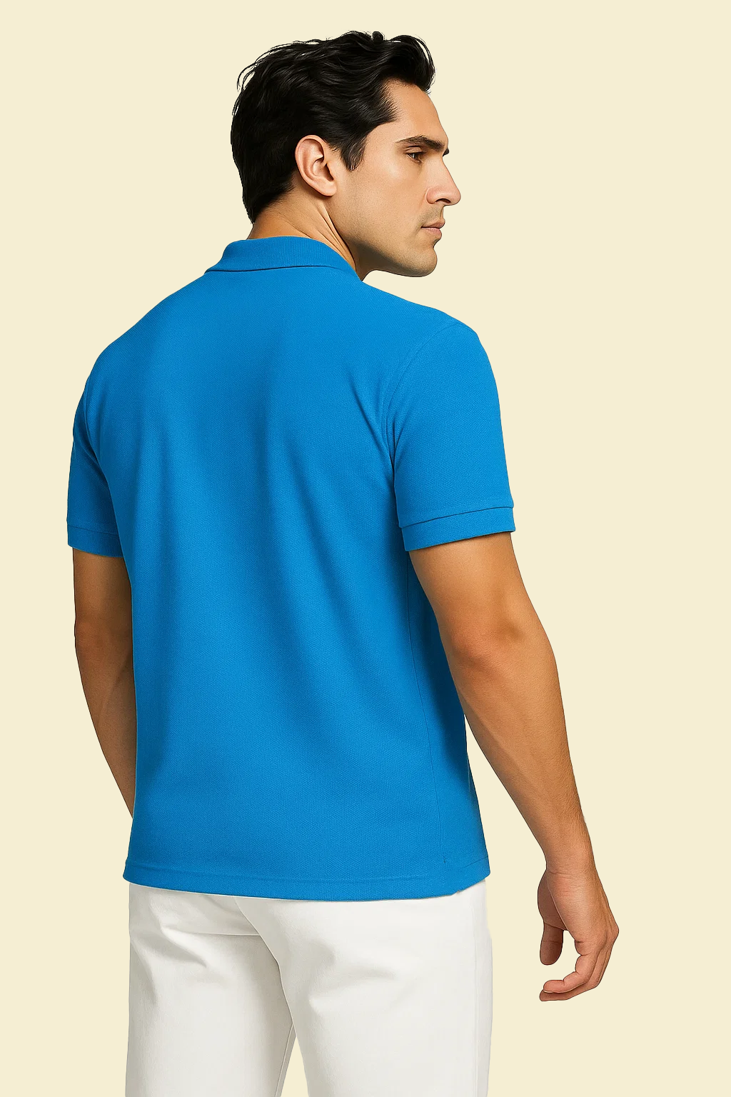 Niebieska Koszulka Polo z Kołnierzykiem Żebrowanym i Zapięciem na 3 Guziki – Casimir